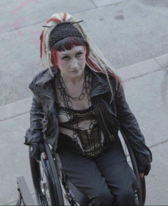 Physical Description | The first thing one notices about Tuula is her chair. Typically, she uses a lightweight non-folding manual wheelchair, but has or can replicate other models for specific tasks. The second is her style. Influenced by goth and punk subcultures, her hair is often dyed black with various highlights, and is cut and styled into funky styles. Tuula is thin but athletic, with fairly well-toned arms. |