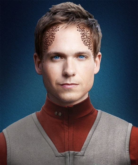 | Physical Description | Aren is about average height for a Trill male, with fair skin. He is lean but well toned. He has boyish good looks which lend to him appearing younger than he really is. He has the tell-tail Trill markings visible from the forehead and down the side of the neck that travel down to his feet. |